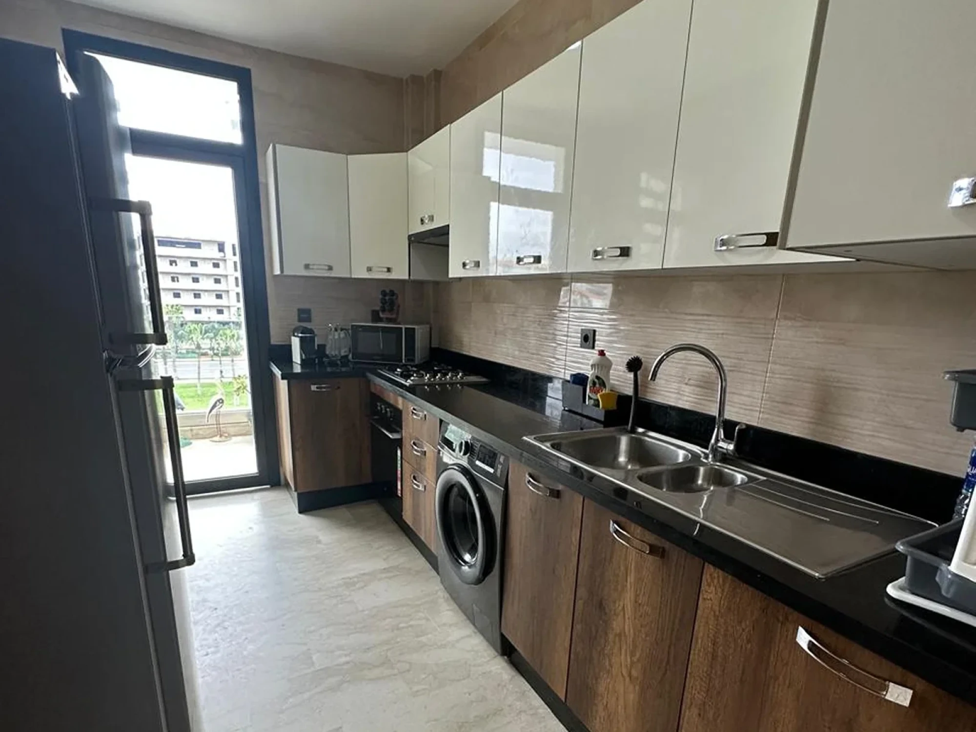 This modern and bright apartment features: