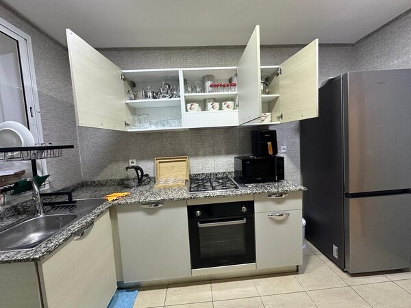 Profitez d'un magnifique appartement spacieux situé au 6ᵉ étage avec ascenseur, parfait pour des vacances ou un séjour professionnel. L'appartement se compose de : 🛏️ 2 chambres confortables 🛁 2 salles de bain modernes 🛋️ Grand salon lumineux 🌞 Balcon agréable avec belle luminosité Équipements : 📺 Smart TV 📶 Wi-Fi haut débit 🧺 Machine à laver 🏊 Piscine dans la résidence 🛗 Ascenseur