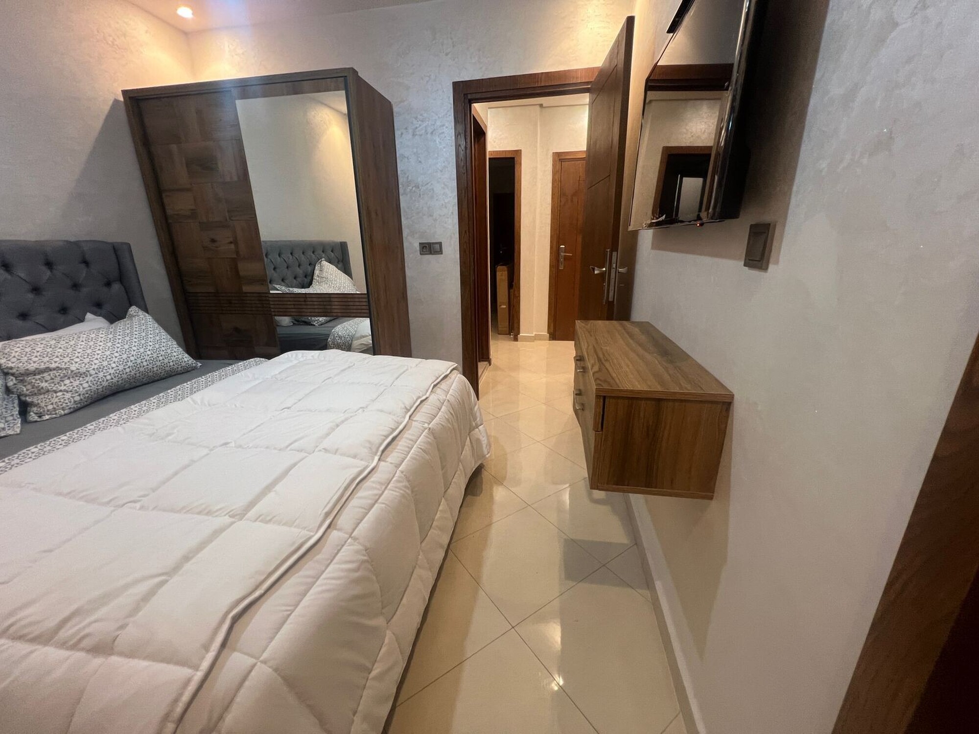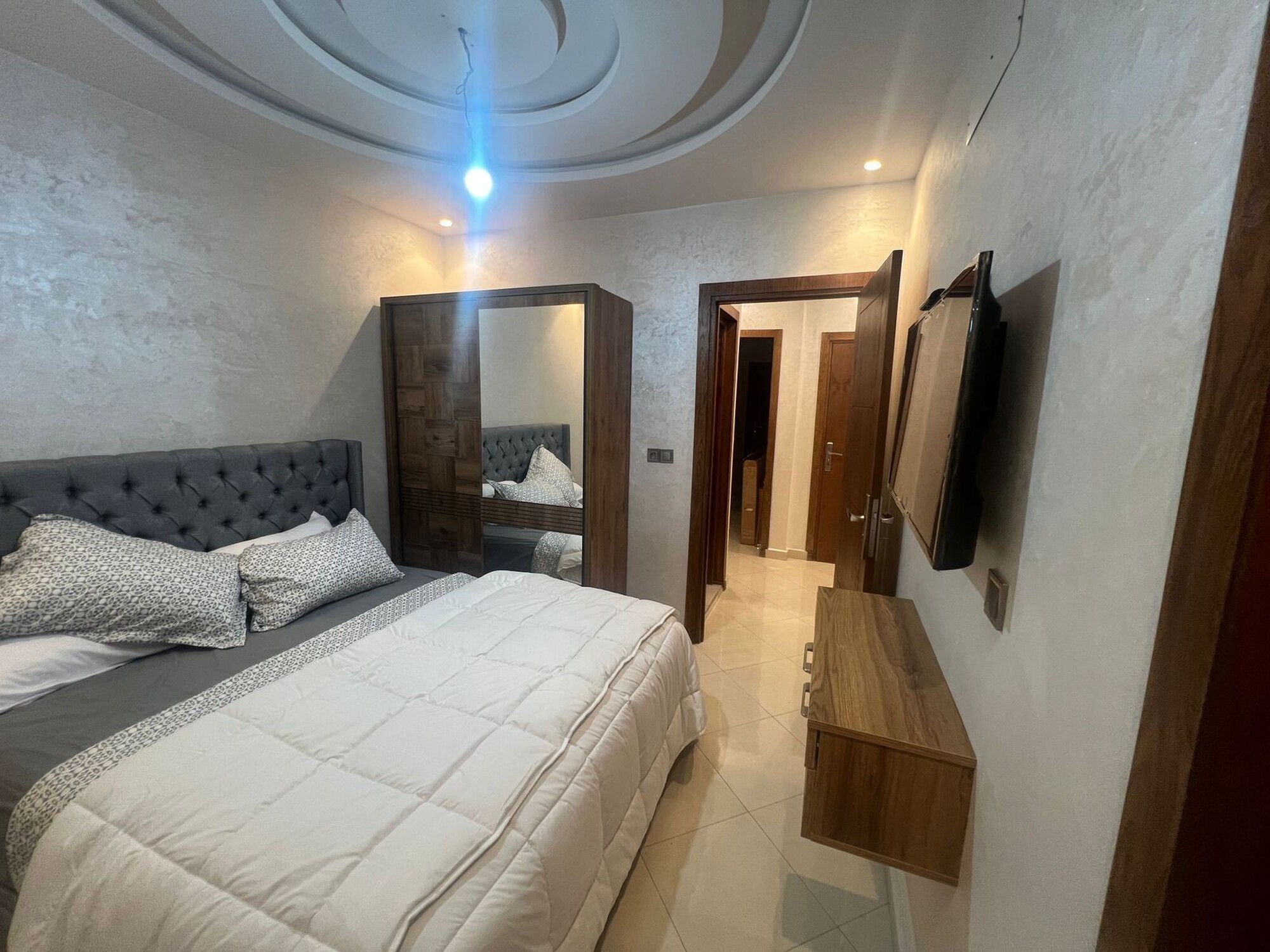Bel appartement meublé situé dans le quartier Hay Dakhla à Agadir, idéal pour un séjour en famille ou entre amis. L'appartement est confortable, lumineux et bien équipé pour passer un agréable séjour dans la ville. Il se compose de 2 chambres, un salon marocain spacieux, une cuisine équipée, une salle à manger et une salle de bain.