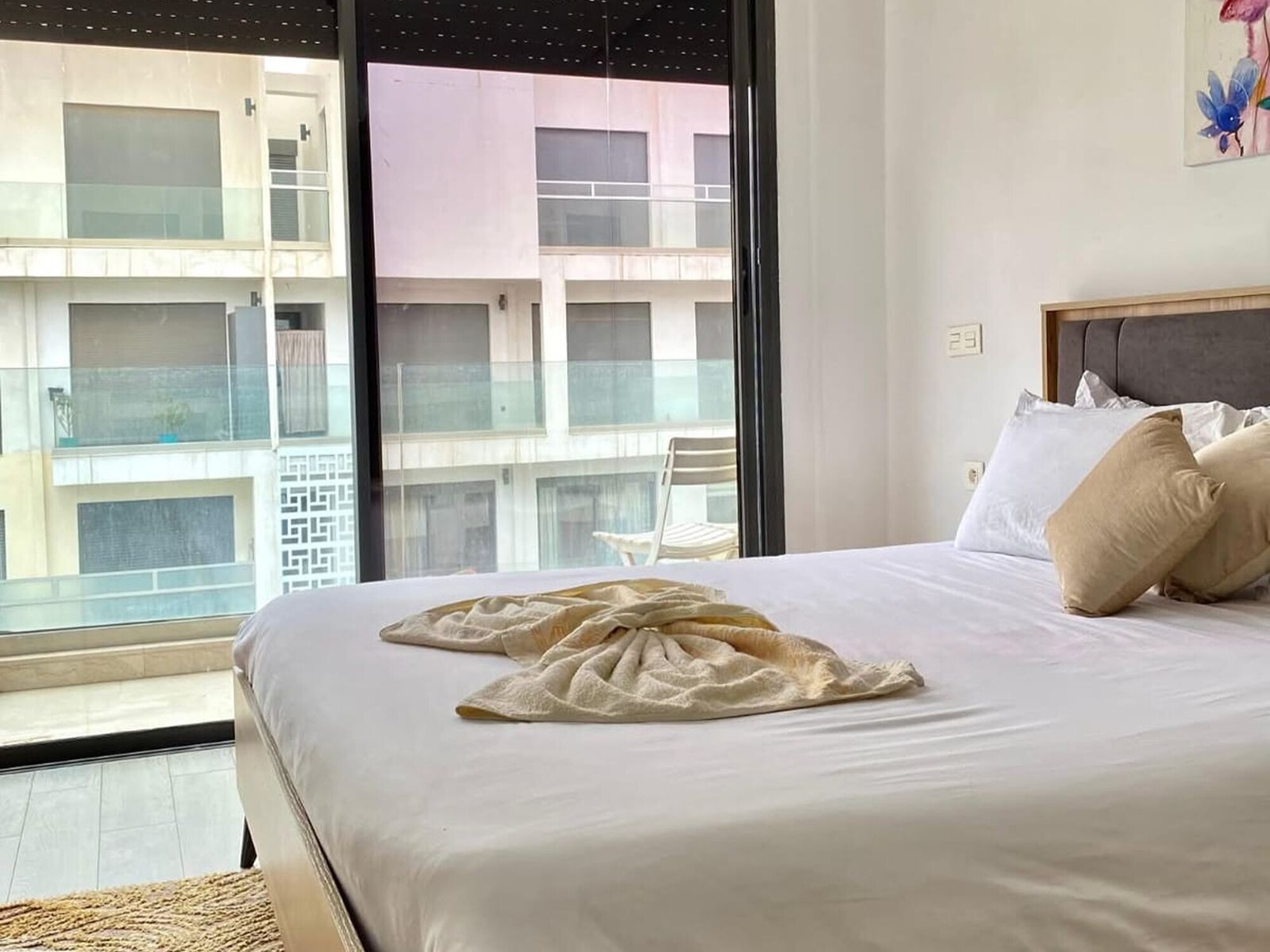 Magnifique appartement meublé situé dans la résidence recherchée Agadir Bay, idéal pour un séjour confortable à Agadir. L'appartement se compose de :